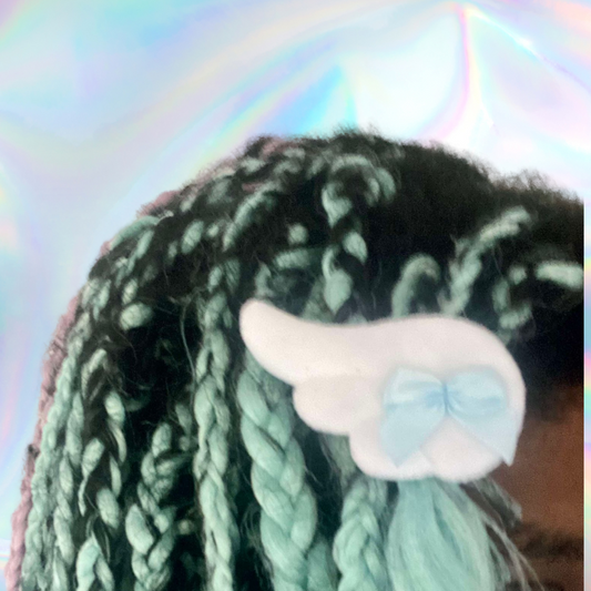 JPOP CUTE Set of 2 White Angel Wing Hairclips with Light Blue Ribbon