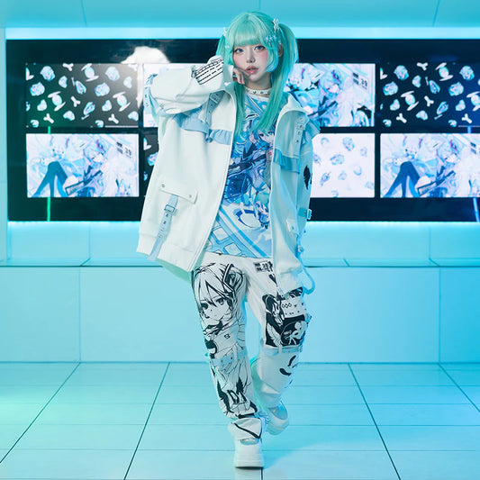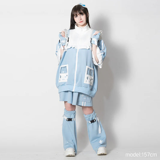 Jill Punk White & Light Blue Cat Ear Harness Hoodie