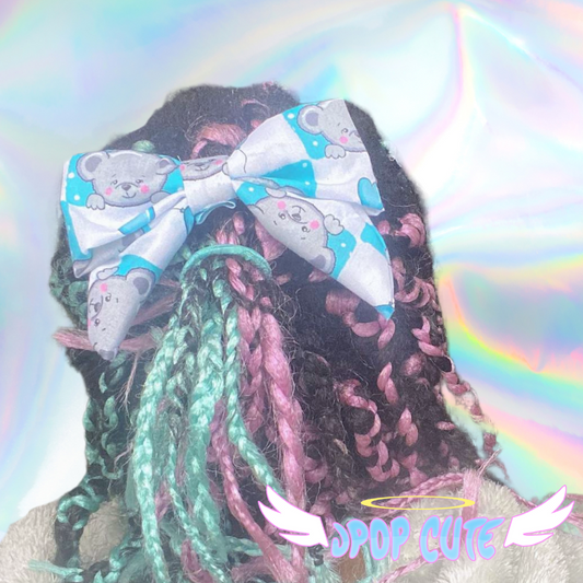 JPOP CUTE Blue & White Teddy Bear Pattern Hair Bow